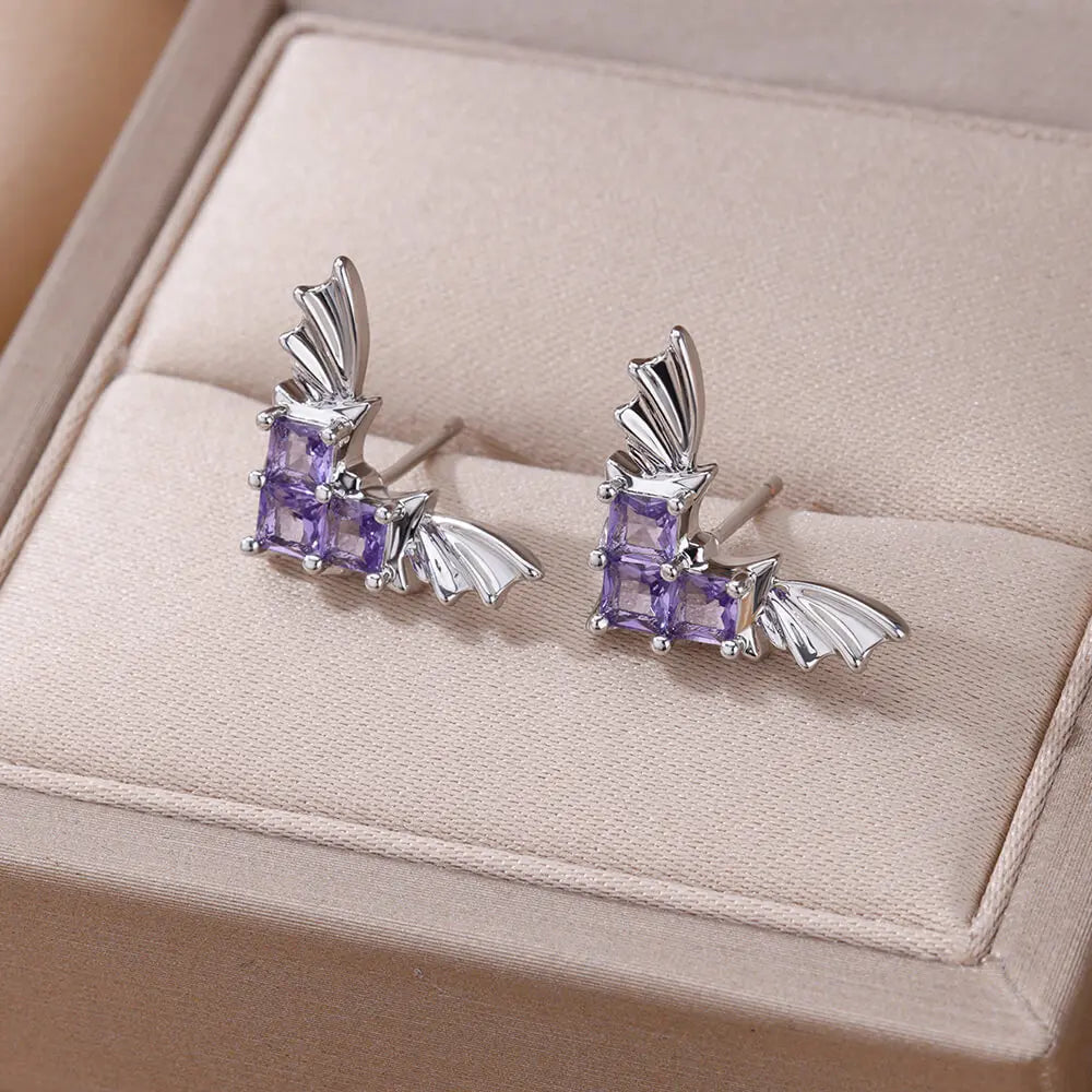 Purple Zircon Angel Wings Earrings For Women Stainless Steel Gold Plated Stud Earring Fashion Aesthetic Femme Ear Jewelry Gift