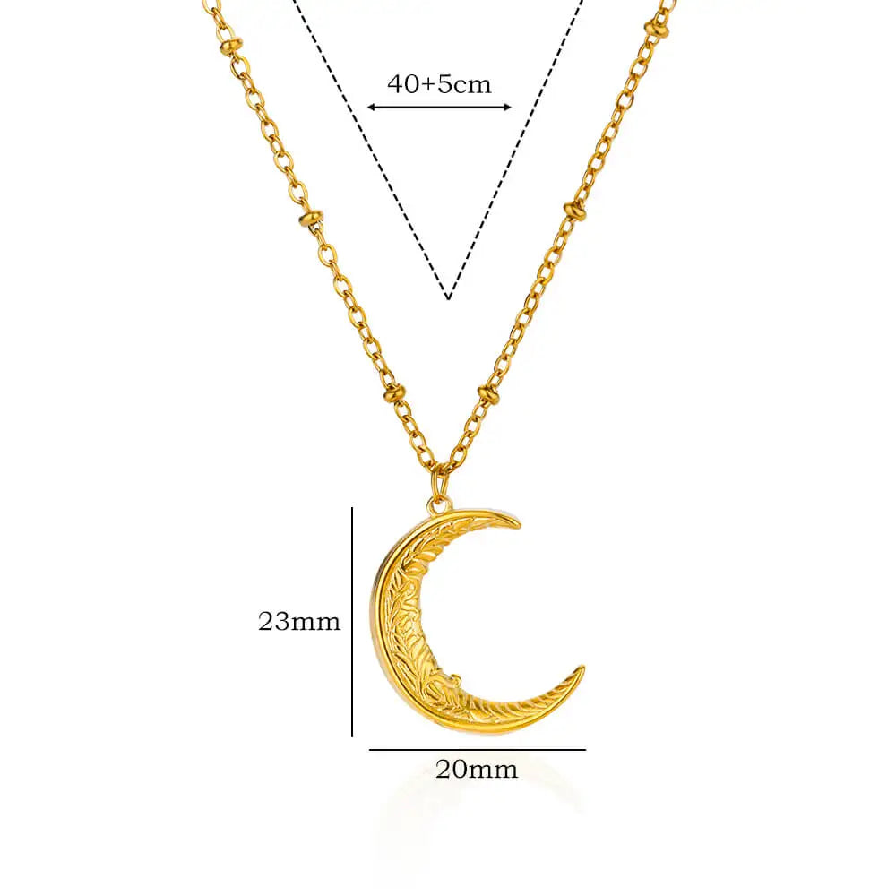 Stainless Steel Moon Pendant Chain Necklaces for Women Gold Color Fashionable Simple Plant Choker Party Necklace Gift for Her